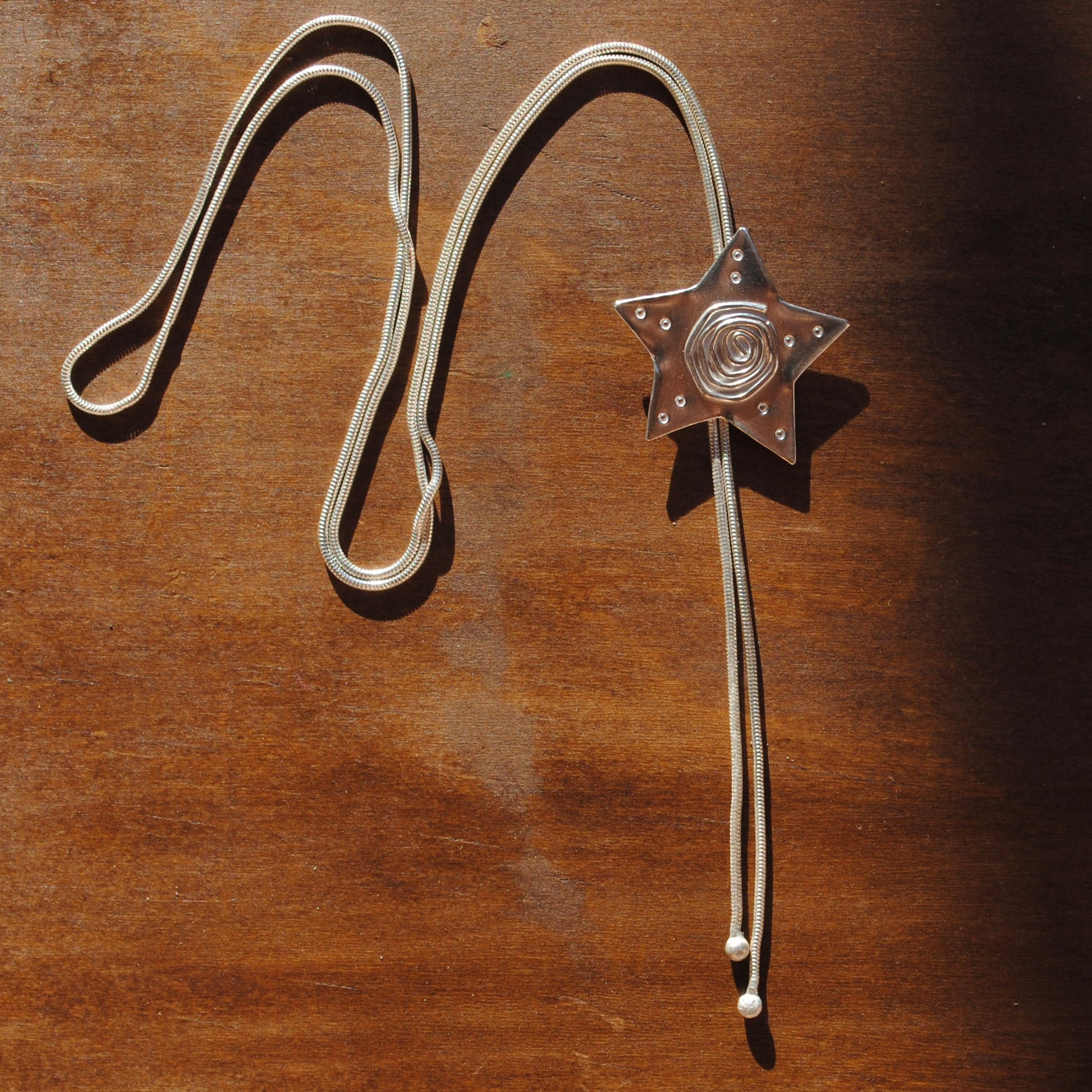 ✧ Bolo tie chain and pendant are both Sterling Silver. The star pendant is made from 20g Sterling Silver sheet ensuring it will retain its shape without being heavy.